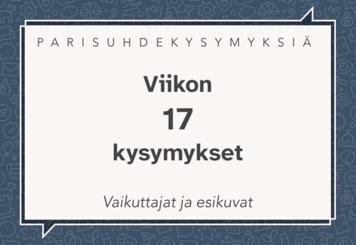 Parisuhde: kysymyksiä puolisolle – Vaikuttajat ja esikuvat – viikko 17 / 2026