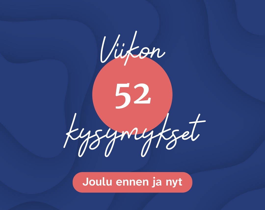 Tämä jouluviikko kutsuu meitä pysähtymään ja miettimään yhdessä vietettyjä hetkiä, menneitä muistoja ja mahdollisia perinteitä. Parisuhteen kysymyksiä viikolle 52, teemana “Joulu ennen ja nyt”: Ma: Millainen olisi unelmiesi joulu? Miltä osin voimme toteuttaa sitä nyt?