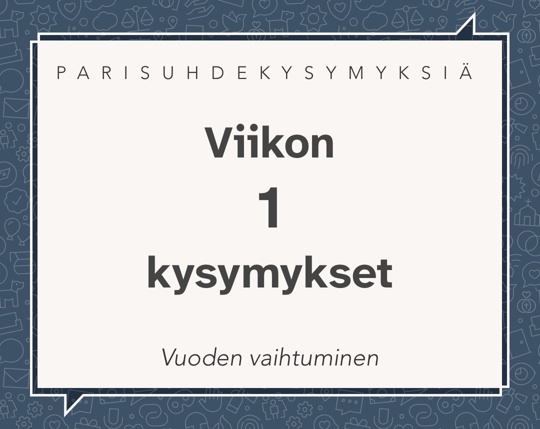 On aika tarkastella mennyttä, suunnata katse tulevaan ja kysyä, miten voimme luoda entistä merkityksellisemmän yhteisen vuoden. Lyhyetkin keskusteluhetket voivat antaa merkittäviä oivalluksia ja vahvistaa suhdettamme. Parisuhteen kysymyksiä viikolle 1, teemana “Vuoden vaihtuminen”: Ma: Miten ja