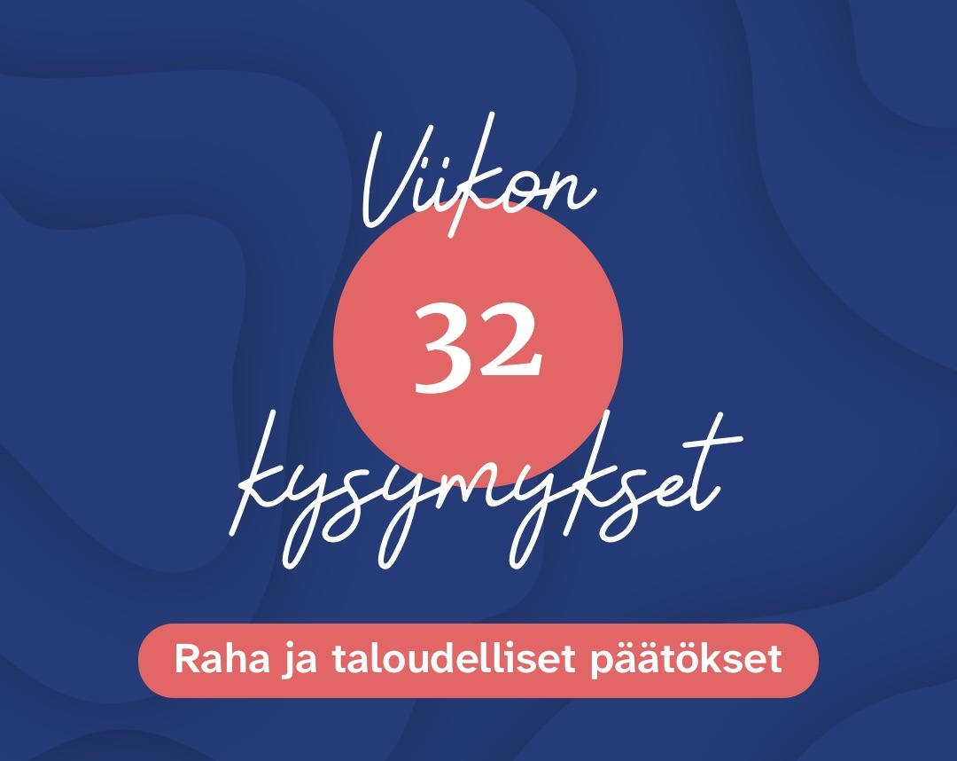 Raha on toisinaan parisuhteen kipeä kohta, mutta se voi myös olla yhteyden vahvistaja. Lyhyetkin keskustelut taloudellisista valinnoista voivat avata oven syvempään ymmärrykseen ja arvostukseen kumppaniamme kohtaan. Parisuhteen kysymyksiä viikolle 32, teemana “Raha ja taloudelliset päätökset”: