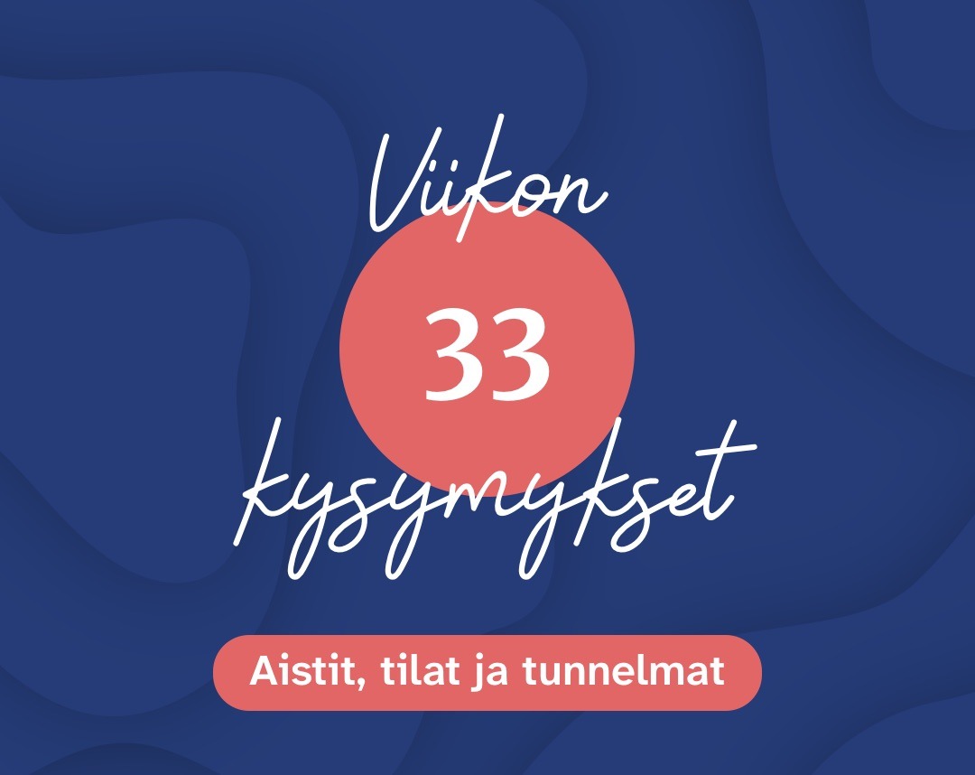 Syvyyttä ja iloa voi löytää parisuhteeseen myös aistien kautta. Tämän viikon aikana rakennamme siltaa rakkaidemme puoleen äänien, paikkojen, makujen ja kosketuksen avulla. Parisuhteen kysymyksiä viikolle 33, teemana “Aistit, tilat ja tunnelmat”: Ma: Mikä kappale tai