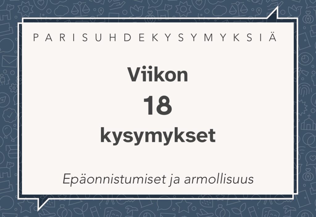 Parisuhteen kysymyksiä viikolle 18, teemana “Epäonnistumiset ja armollisuus”: