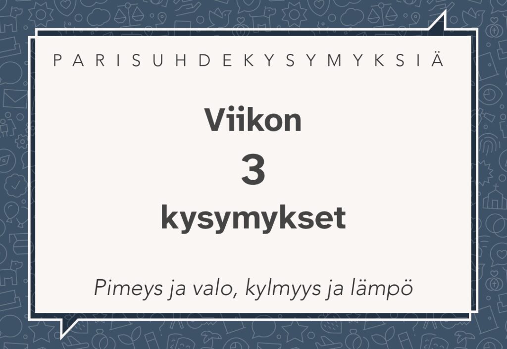 Parisuhteen kysymyksiä viikolle 3, teemana “Pimeys ja valo, kylmyys ja lämpö”: